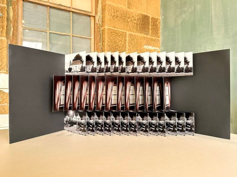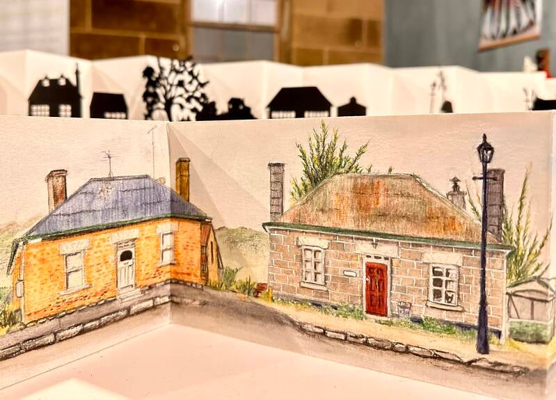 both in papercut and watercolour sketches (now in the Midlands Regional Council collection) as well as other book structures and miniature house constructions.